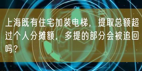 上海既有住宅加装电梯,提取总额超过个人分摊额,多提的部分会被追回吗?