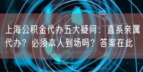 上海公积金代办全攻略:直系亲属能否代办?提取是否必须本人到场?本文详解上海公积金代办条件、材料、流程,含直系亲属代办要求、非亲属代办规定及风险提示,助您高效合规办理公积金业务。