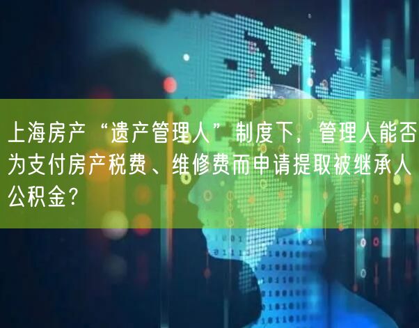 上海房产遗产管理人能否提取被继承人公积金?详解法定限制 操作路径 含有继承人需取得书面授权 无继承人时民政部门直接提取等情形 附申请材料清单与注意事项 为遗产管理中房产税费 维修费支付提供合规指引 助力了解上海公积金提取政策。