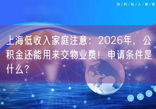 2026 上海低收入家庭公积金提取交物业费攻略!一文详解申请条件、提取额度、办理材料及流程,自有产权房月提 300 元,共有产权房按实支取,速看实操指南!