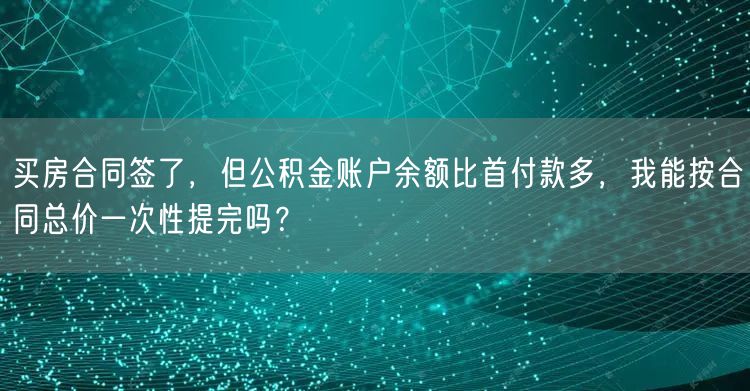 问:我买的是二手房,全款支付,公积金账户余额比房价高,能一次性提完房价金额吗?答:可以,只要在不动产权证发放后 5 年内申请,提取金额不超过房价且以万元为单位取整,同时不超过账户余额即可办理。