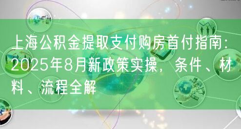 上海公积金提取支付购房首付指南:2025年8月新政策实操,条件、材料、流程全解